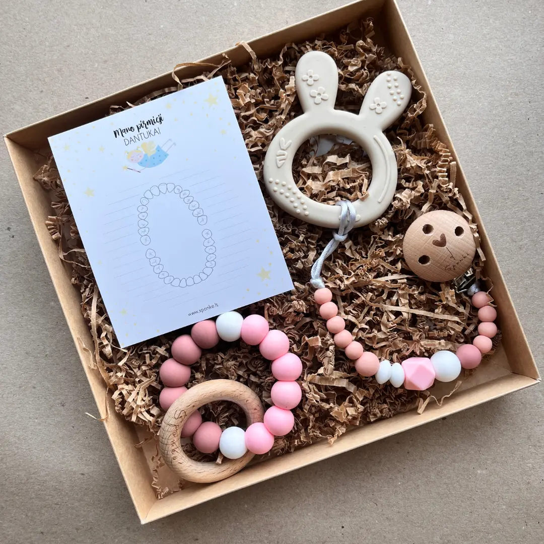Ieškote stilingos ir praktiškos dovanos kūdikiui?Silikoninis kramtukas ir čiulptuko laikiklis – tai išskirtinis pasirinkimas, kuris sujungia natūralumą, eleganciją ir funkcionalumą. Šis rinkinys puikiai tiks mergaitei.