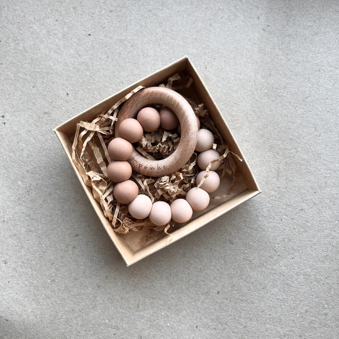 Kramtukas-apyrankė kūdikiui – tai daugiau nei tik stilingas aksesuaras. Jis sujungia natūralų buko medį ir minkštus silikoninius karoliukus, kurie padeda mažyliui lengviau iškęsti dantukų dygimą, lavina smulkiąją motoriką bei stimuliuoja sensorinį pažinimą.