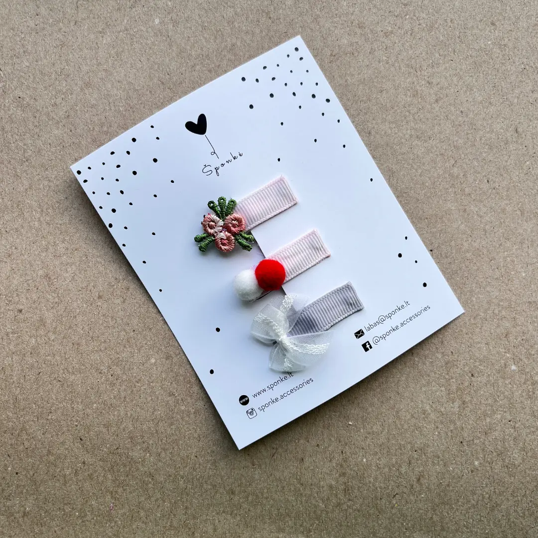 Mini plaukų segtukų rinkinys – baltas bantukas ir gėlytės