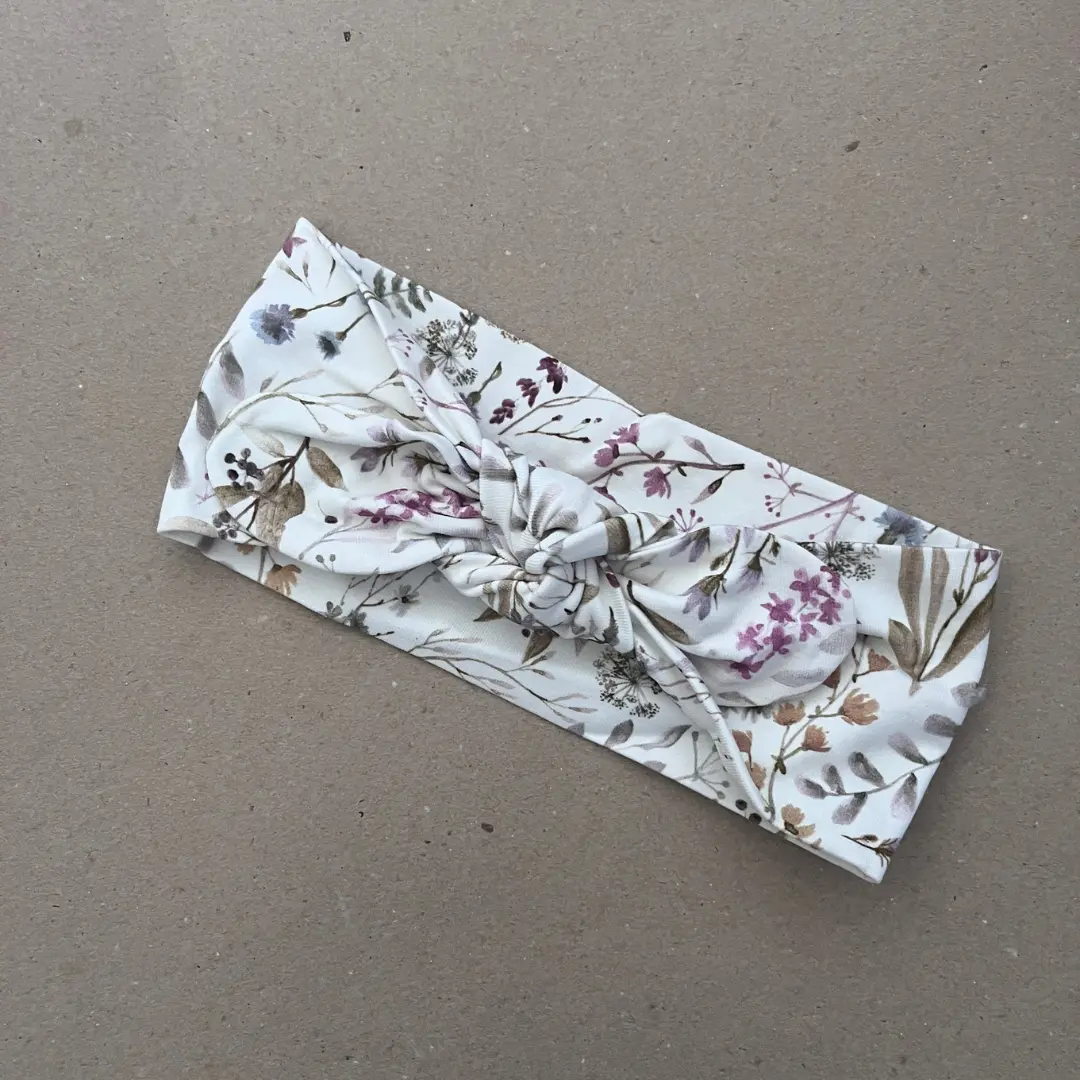 Elegantiška plati galvos juosta mergaitei „Laukinė pieva“ su subtiliu laukinių gėlių raštu. Švelnios natūralios spalvos suteikia juostai lengvumo ir puikiai dera prie įvairių mergaičių aprangos derinių.