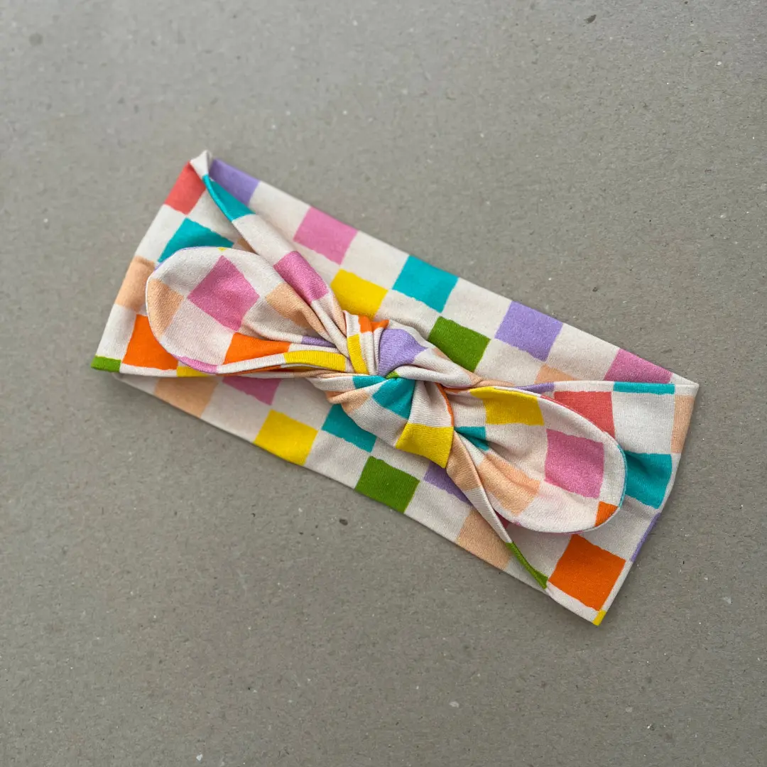 Ši plati galvos juosta mergaitei su spalvotų kvadratėlių raštu – žaismingas ir stilingas aksesuaras vaikams. Spalvingas geometrinis dizainas suteikia aprangai išskirtinumo ir puikiai dera prie įvairių vaikų drabužių derinių.